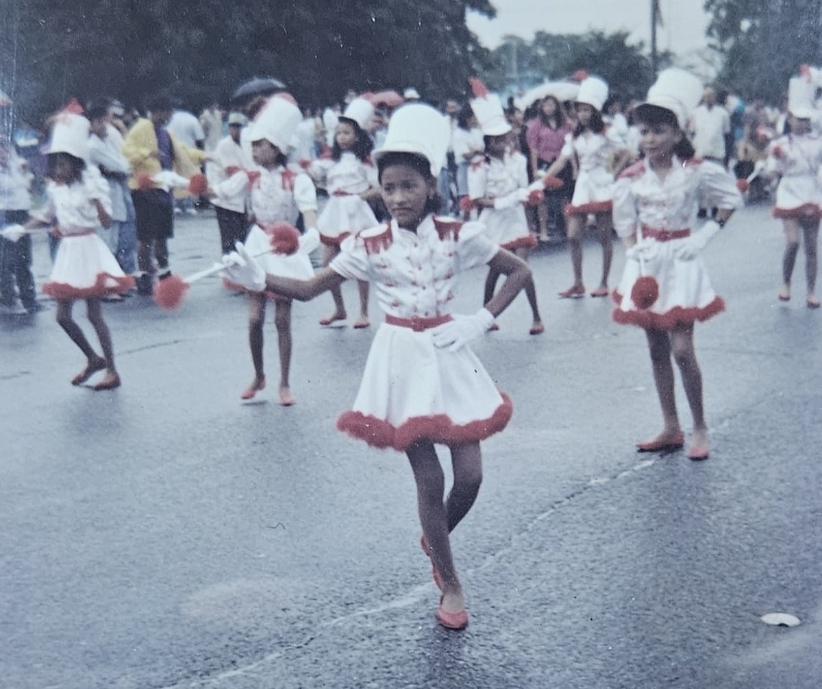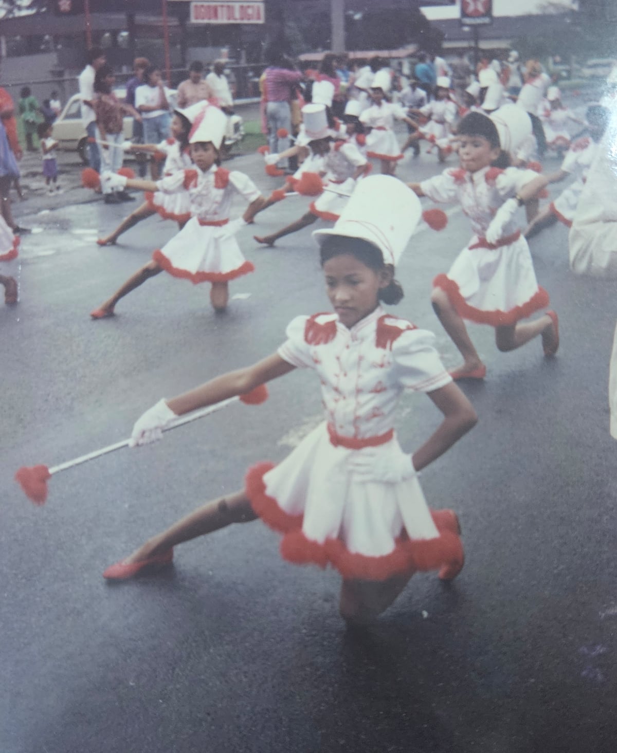 Fui batutera dos años (en cuarto y quinto año). En sexto grado desfilé llevando el estandarte del colegio por ser primer puesto de honor. Por eso, ese año, no desfilé como batutera porque me tocaba llevar el estandarte.