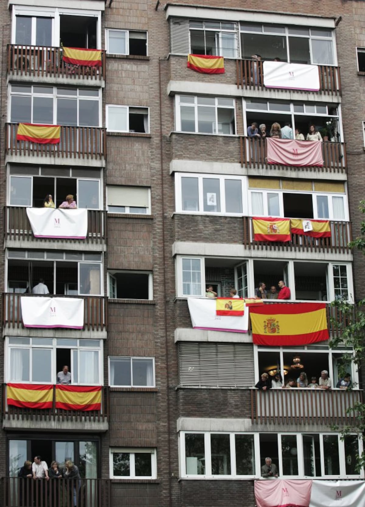 El público esperaba un beso de los recién casados cuando salieron a saludar en el balcón del Palacio Real de Madrid.