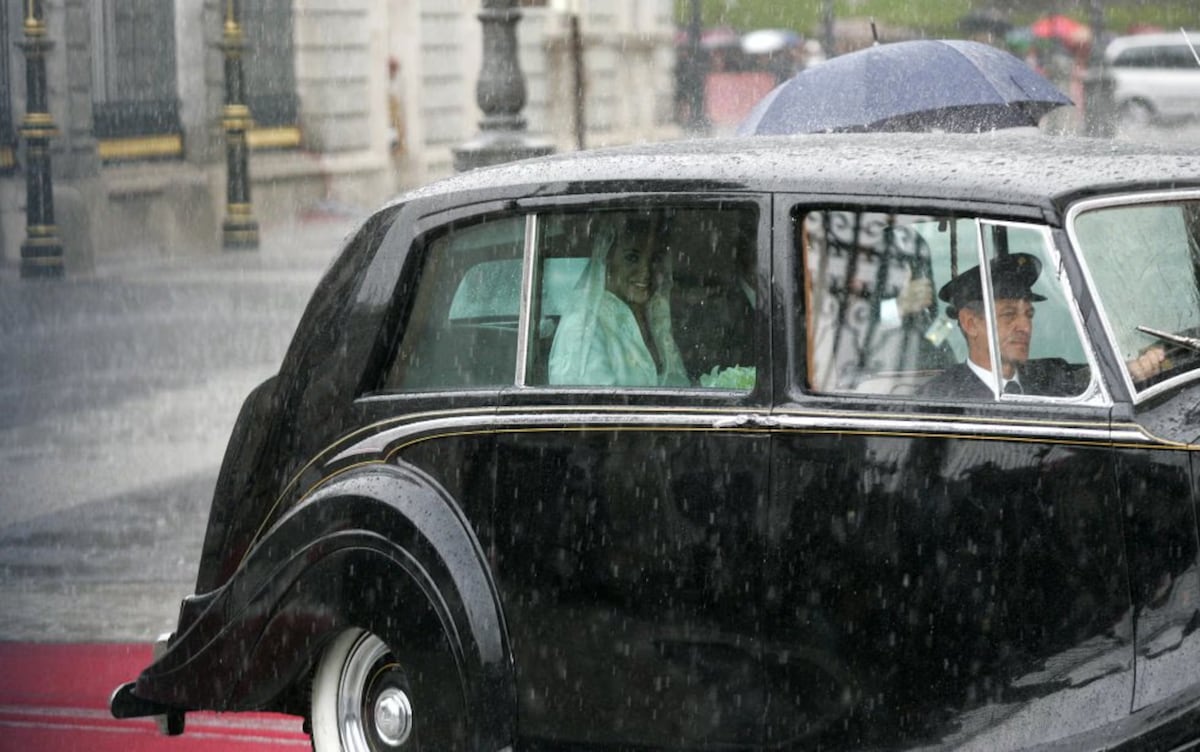 La boda se realizó en un día lluvioso en la catedral de la Almudena. Esto hizo que la novia llegara al altar con 20 minutos de retraso: había llovido tanto que el servicio de protocolo tuvo que buscar la mejor opción para que la novia no se empapara.