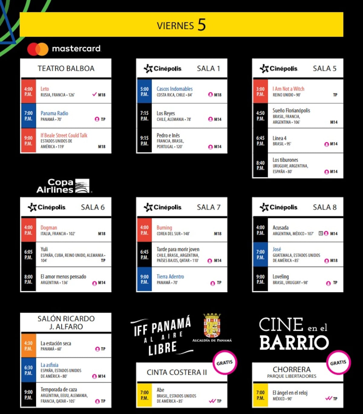 Cartelera de películas que se presentarán este viernes 5 de abril en el IFF Panamá