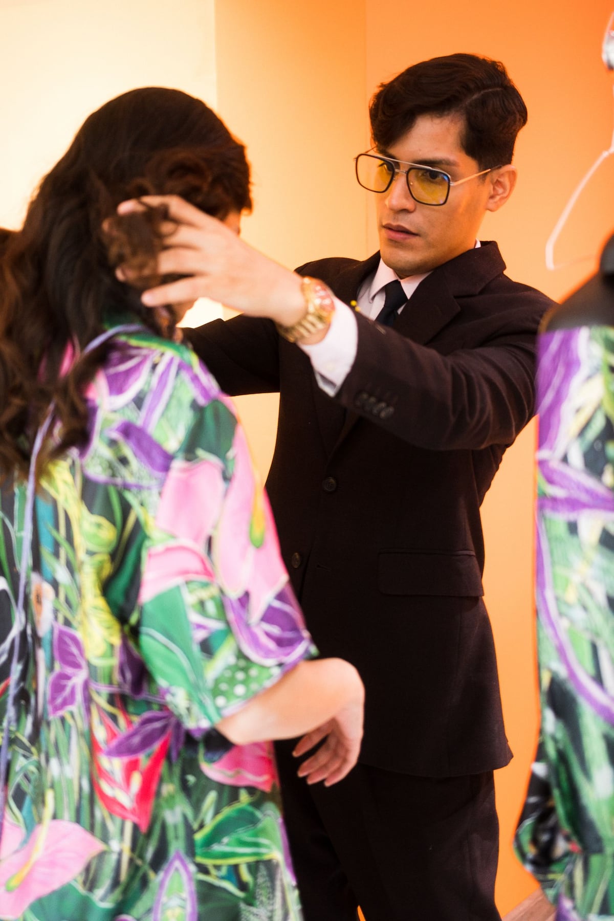 Tony Vergara en los arreglos finales antes de la pasarela de Arteorus.