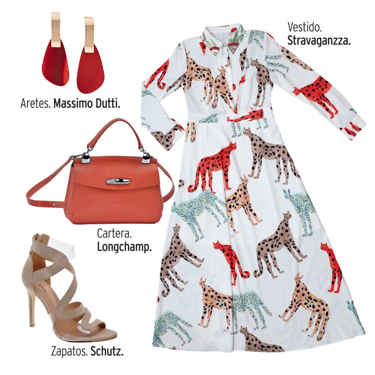 ¿Por qué impacta? Un estampado felino muy diferente a los que se estila ver: las mismas fieras se vuelven protagonistas en un vestido de corte alto. Los acentos rojos combinan y resaltan.
