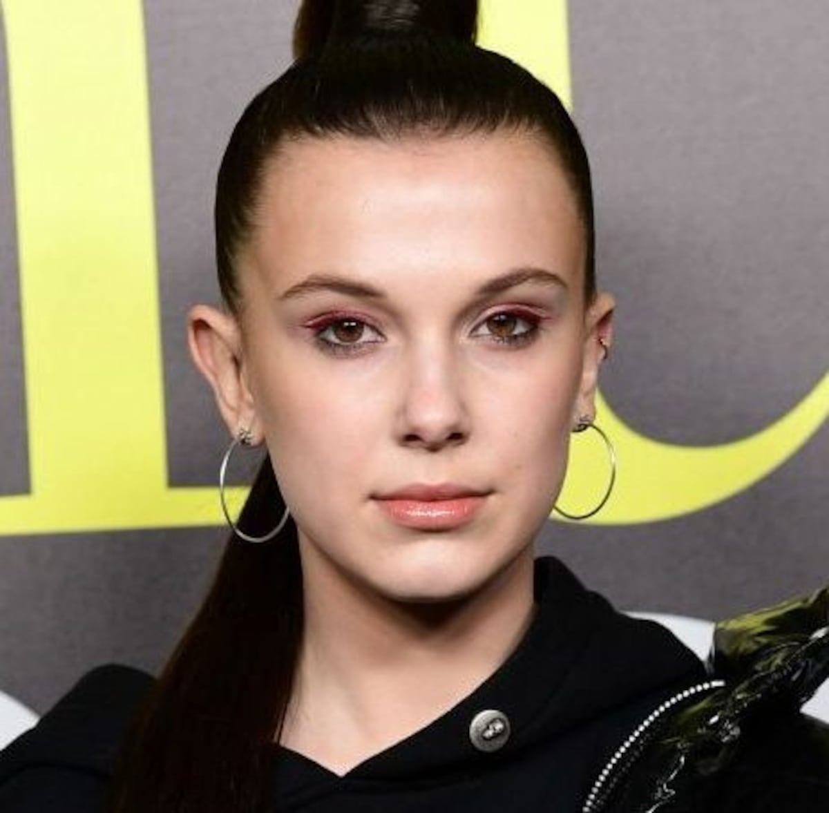 Una delgada línea roja resaltó los ojos de la actriz Millie Bobby Brown.