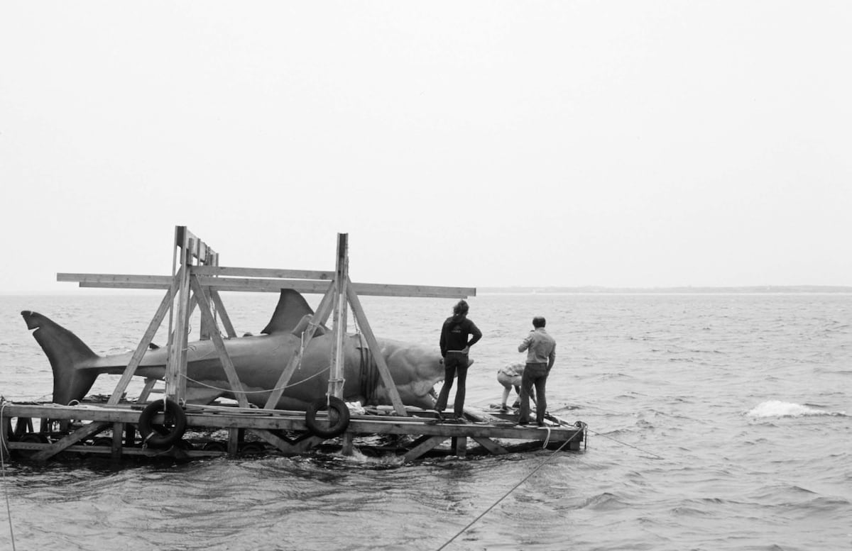 Curiosamente fue la escasez de tomas del tiburón mecánico, debido a problemas técnicos, lo que llevó a Spielberg a utilizar el fuera de campo, la sustitución de la ausencia visual del animal en pantalla por el recurso sonoro.