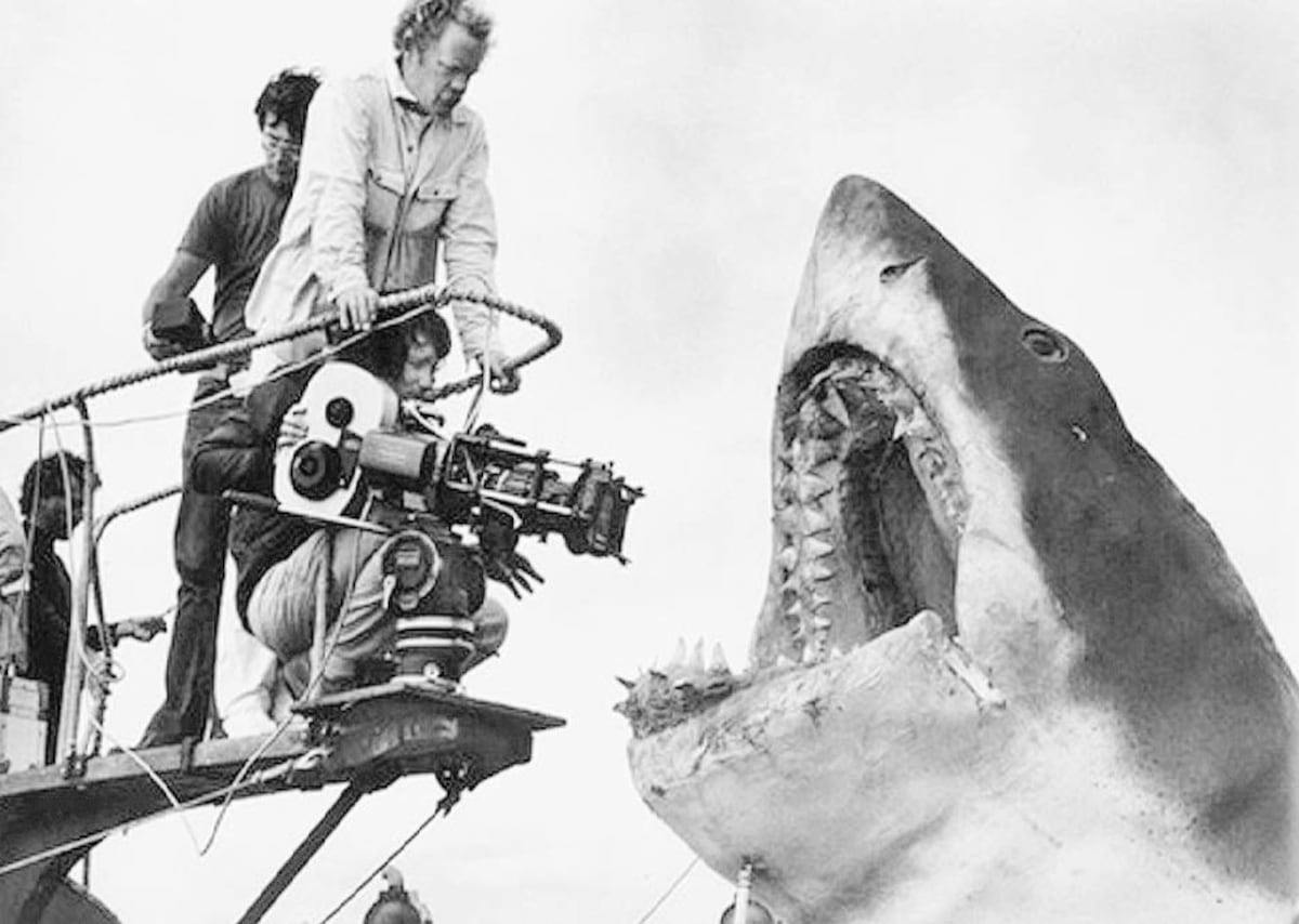 Imagen del rodaje de "Tiburón", película que revolucionó el cine en 1975. Foto © Edith Blake (del interior de la novela Tiburón, de Peter Benchley, publicada por Editorial Planeta).