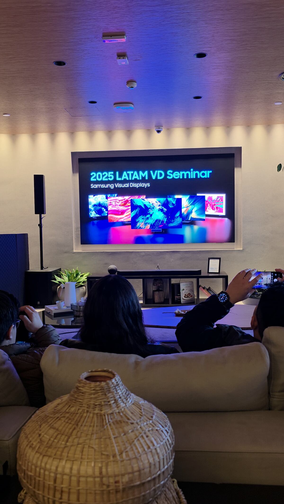 El primer día del seminario comenzó con un recorrido inmersivo por un salón de exhibición donde se comparaban televisores actuales con los nuevos lanzamientos de Samsung. La diferencia era evidente: pantallas más brillantes, funciones más intuitivas y una experiencia visual ajustada a cada entorno. Ahí, gerentes de producto nos explicaron en detalle cómo estas mejoras responden a necesidades reales de los usuarios.