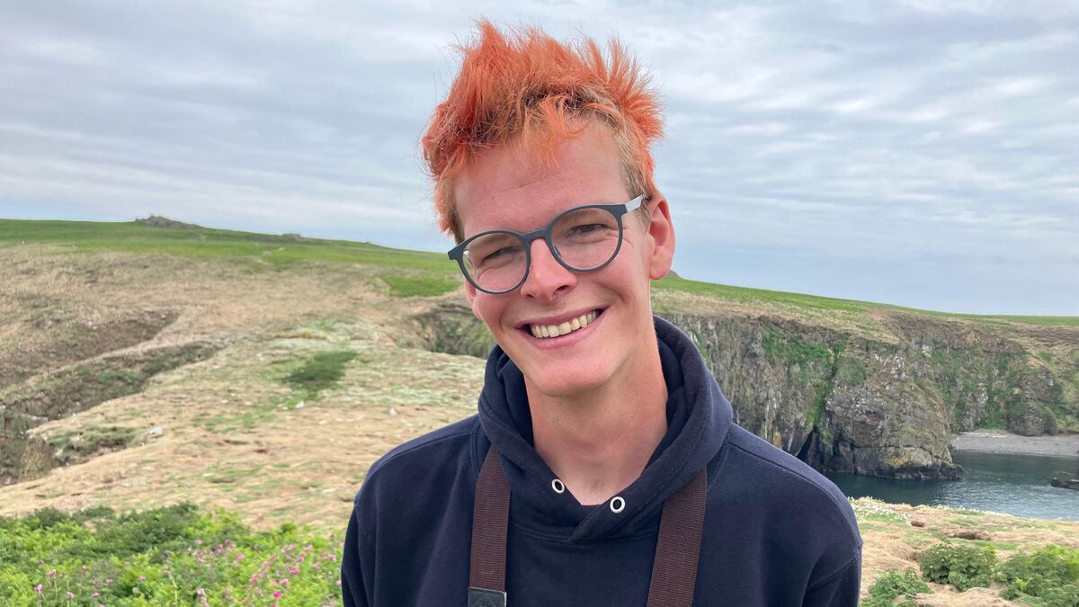 Rob Knott dice que contar los frailecillos en la isla Skomer es "un gran trabajo". / BBC