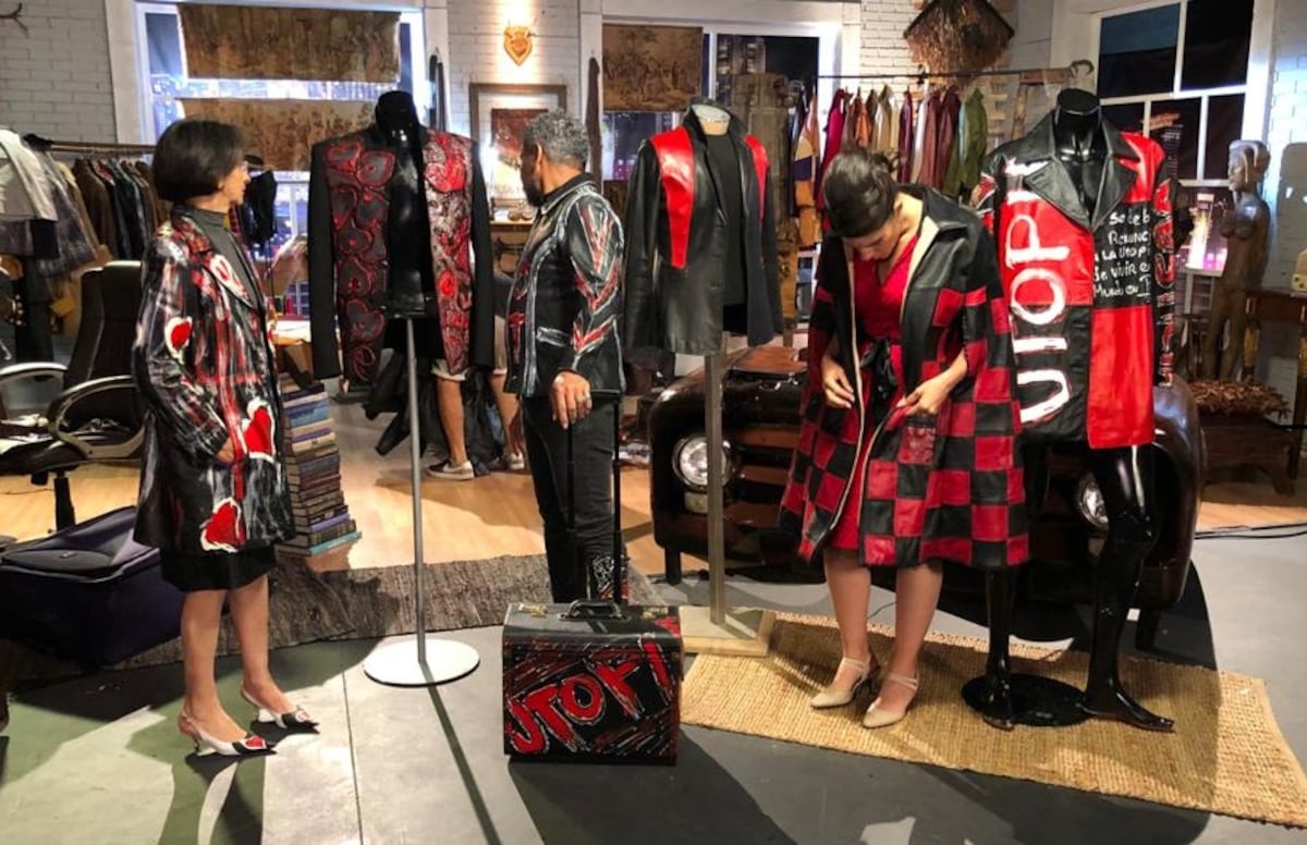 Carola Parmejano, José Alexzander y la diseñadora colombiana Lilia Merchan. Fotos cortesía