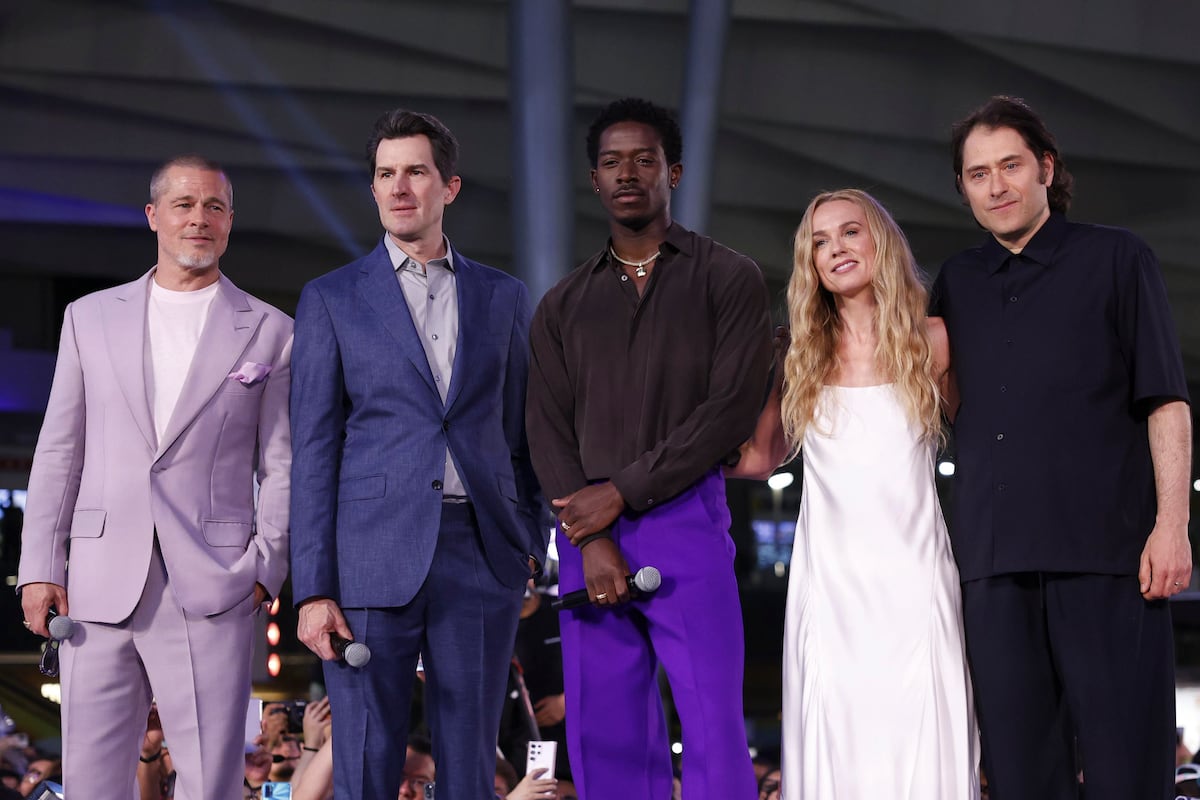 Durante el photocall, el actor interactuó con la prensa y dedicó tiempo a sus seguidores para firmar autógrafos y tomarse fotos. También posó junto a sus compañeros de elenco, entre ellos Damson Idris, quien interpreta al piloto novato Joshua Pearce, rival de su personaje en la cinta.