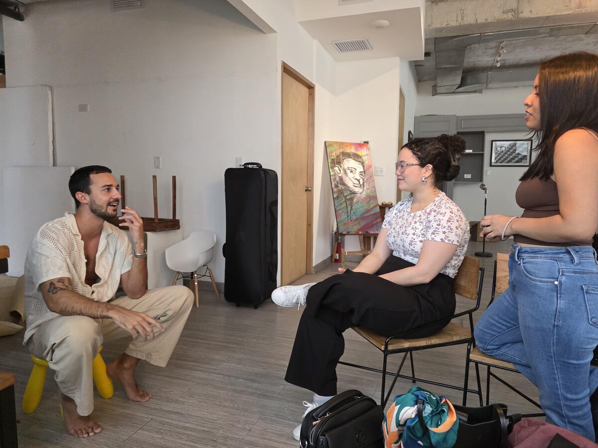 Robert conversando con Diana Fernández y Lourdes Hernández del equipo ELLAS