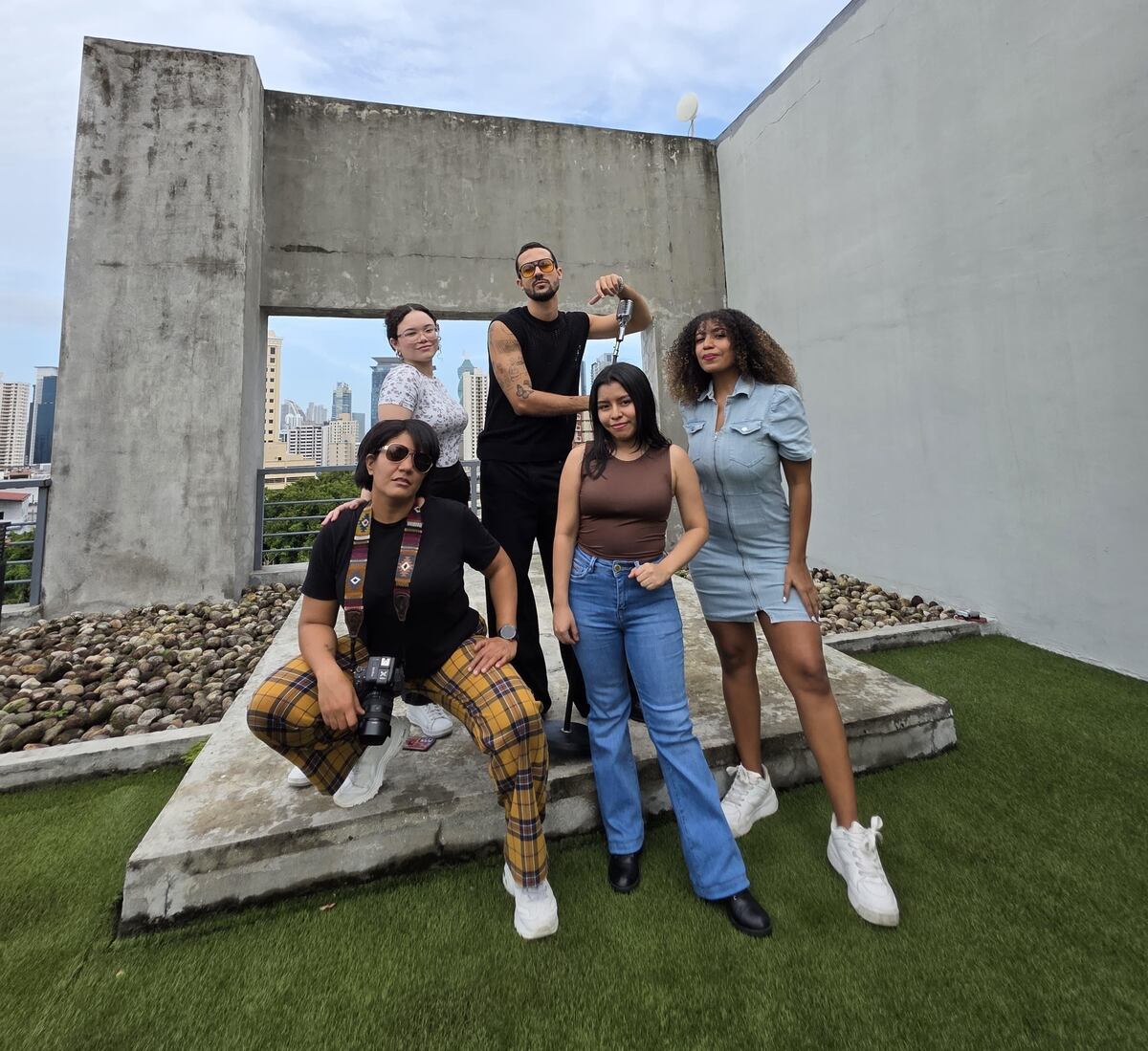 De Izq. a Der., la fotógrafa Janín Gastón, la reportera Diana Fernández, el cantante Robert Spratt, Lourdes Hernández y Solangel Hurtado Mendoza del equipo de ELLAS.