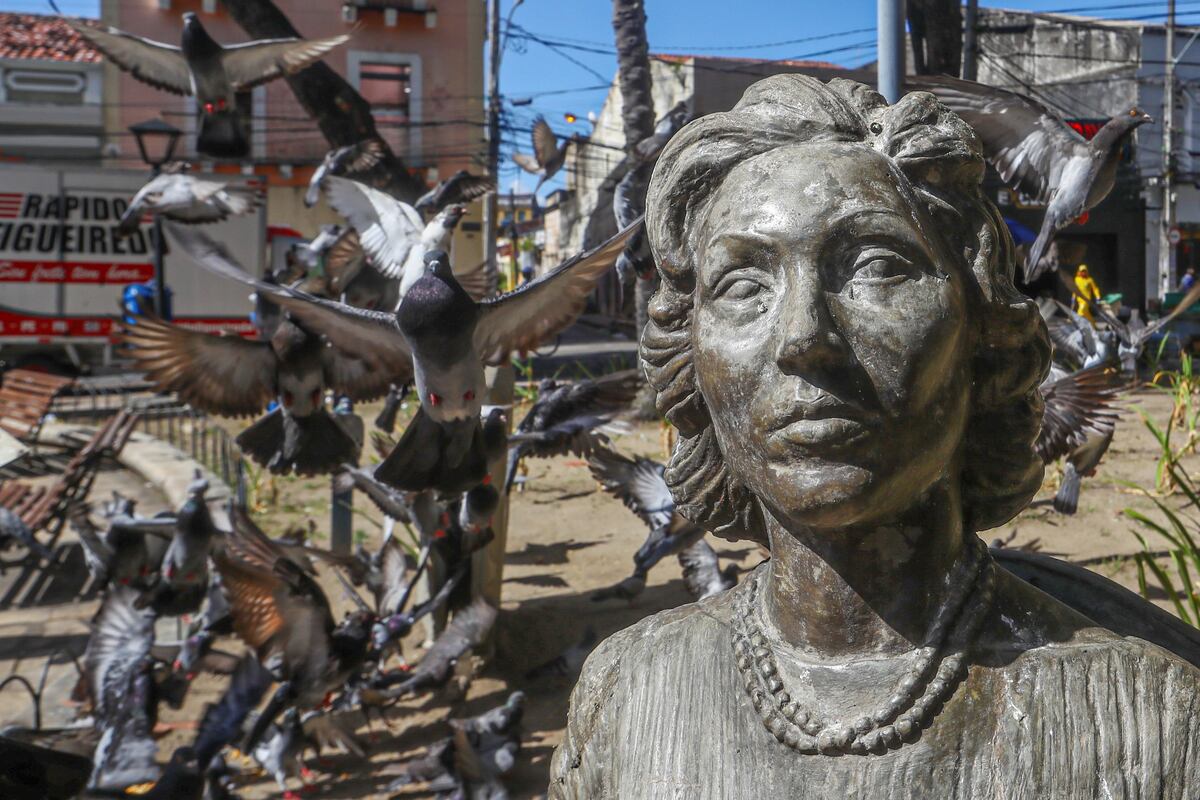 Fotografía de la estatua de la escritora ucraniana-brasileña Clarice Lispector en la plaza Maciel Pinheiro, en el centro de Recife (Brasil). EFE/ Carlos Ezequiel Vannoni