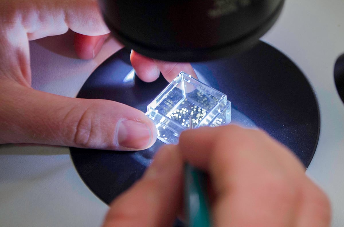 La investigadora del STRI Brígida de Gracia estudiando muestras de peces en el laboratorio. Foto: Cortesía